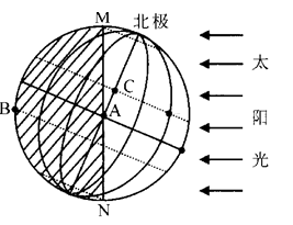 A.10:10、21:50 B.09:50、14:10 C.6:50、17:10 D.05:50、18:10 3、单选题 下列“地球绕日公转示意图”正确的是 4、综合题 读图(阴影部分为夜半球),回答下列问题:(10分) 5、单选题 北京时间2012年12月21日19:18,北半球迎来冬至。此刻,日期为2012年12月22日的地区约占全球面积的( )
