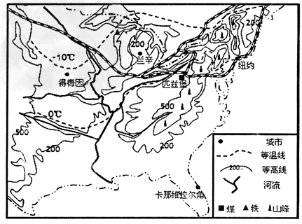 ?(1)对比图中纽约与得梅因两地此时温度高低的差异并分析形成这种差异的主要原因。
