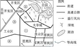 1.关于图中①、②、③、④表示的功能区的表述,正确的是2.科学地规划城市建设,有利于