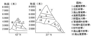 B.乙坡自然带海拔低——热量充足