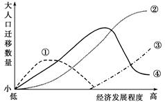 5、单选题 下图显示了人口迁移和经济发展之间的关系,分析回答1—3题。
