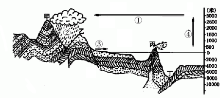 (1)若该图表示为热力环流图,甲、乙、丙、丁中气温最高的是_________,气压最高的是_________。