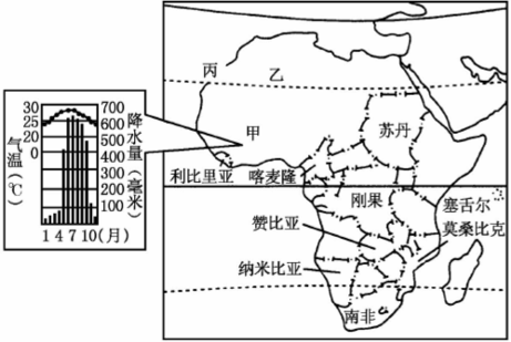 (2)试描述甲地的气候特征,并分析其成因。(8分)