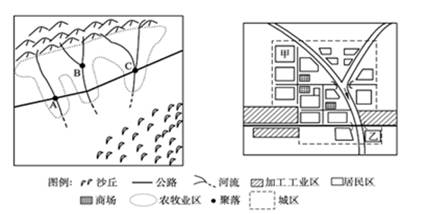 (2) 图中新城位于C处,试从地理学的角度分析新城中甲乙两居住区房价差异的原因。(4分)