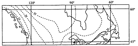 1、关于图示地区气温年较差空间分布的叙述,正确的是 [? ] A.由南向北增大 B.平原地区小,高原、山地大 C.由西向东增大 D.由沿海向内陆、由低纬向高纬增大 2、由图中数据可直接得出的结论是 [? ] A.大陆西岸的降水量多于东岸 B.大陆东岸的森林覆盖率大于内陆 C.大陆西岸的海洋性强于东岸 D.大陆东岸河流结冰期大于内陆