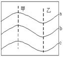 【小题3】如为等高线,a<b<c,可知甲处应为山脊线,乙为山谷线,也可代表河流走向。故选C项。
