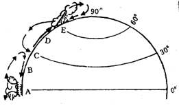 4、综合题 读“气压带、风带的分布示意图”,完成下列要求。(10分)