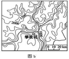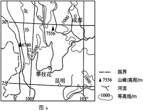 材料一:居住在成都的小明和小亮在“寻找最佳避寒地”的课外研究中发现,有“百里钢城”之称的攀枝花1月平均气温达13.6 ℃(昆明为7.7 ℃,成都为5.5 ℃),是长江流域冬季的“温暖之都”。图a示意攀枝花在我国西南地区的位置,图b示意攀枝花周边地形。
