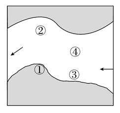 【小题1】根据地转偏向力,北半球向右偏,南半球向左偏,以及凹岸侵蚀、凸岸堆积,可判断出②③④为侵蚀岸,①地侵蚀作用最微弱。