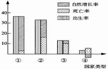 小题2:图中国家类型④所反映的人口问题主要是