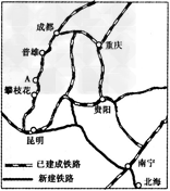 4、单选题 读我国局部地区铁路网分布图,回答1-2 题。