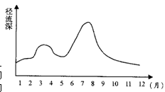 径流深=径量总量/(1000x流域面积)。下图为我国某河流下游某断面的月径流深的变化示意图。结合材料与示意图完成下列各题。
