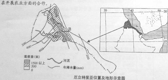 1、综合题 读有关厄立特里亚的图文资料,回答问题。(16分) 厄立特里亚气候干旱,降水量小而且不稳定。2007年人均国民收入仅270美元,农业是国民经济的支柱,但粮食不能自给。农业生产技术相对落后,如在平原、山地斜坡主要采用传统地面灌溉和引洪灌溉的方式,很少实施喷灌、滴灌。目前我国和厄立特里亚正在开展农业方面的合作。