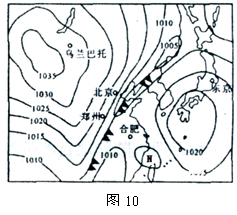 A.郑州风力较小、合肥风力较大 B.合肥气温低、气压高 C.降水最可能在郑州 D.降水最可能在合肥 |