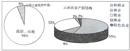 2、综合题 图中甲省已成为我国重要的花卉、中药材等特色农产品的生产加工基地,下图是该省地形构成与农业生产结构状况,根据资料并结合所学知识回答下列问题(20分)