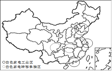 5、单选题 白色家电是指洗衣机、空调、电冰箱等可以替代人们家务劳动的电器产品。进入21世纪,我国白色家电工业区加快了产业结构升级和产业布局调整。下图示意我国白色家电工业区与转移承接区分布。读下图,完成下列小题。