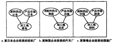 1、单选题 下图为三家企业投资建工厂的原料地、加工地和产品市场示意图,读图回答1—2题。