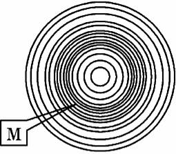 2、单选题 树木年轮是气候变化的历史证据。读某地树木年轮示意图,回答下面两题。