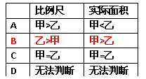小题1:甲乙两图所采用的比例尺及图示实际面积的大小关系(如表格所示),正确的是