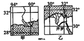 5、单选题 图中甲、乙两图为世界著名的三角洲,读后回答53~55题。