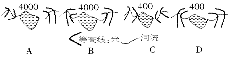 5、单选题 下图是北半球中纬度某地区的地形图,读图回答下列各题。