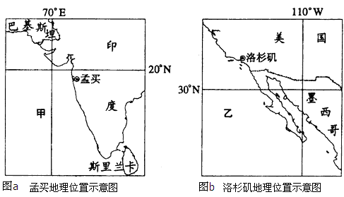 2、综合题 孟买和洛杉矶分别是发展中国家和发达国家具有代表性的城市。根据下列资料,结合所学知识,回答各题。(18分)