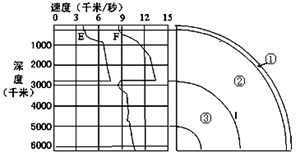 小题1:图示F的波速较E快,故判断F为纵波,E为横波,纵波能通过固体、液体,而横波只能通过固体,A错误;结合图示①②之间即为莫霍界面,纵波、横波经过莫霍界面时,波速都明显上升,BC错误。图示在①②区域纵波和横波都能通过,反映地壳和地幔都是固体,D正确。