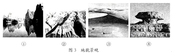 小题1:图3所示景观中,主要由风力侵蚀作用形成的是(? )