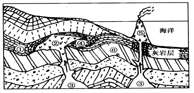 1、综合题 看下列地质构造剖面图,回答下列各题。