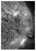 5、单选题 该图是美国宇航局2012年7月4日拍摄的太阳活动(耀斑)剧烈爆发图像,大量带电粒子喷射到太空。读图回答问题。