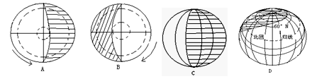 ![]() 参考答案: 本题解析: 本题难度:一般 3、单选题 2012年12月21日19时11分35秒冬至,沙市中学第六次周考地理科考试期间太阳直射点 参考答案:C 本题解析:根据材料12月21日为冬至日,太阳直射点应位于南回归线上,而此次考试在12月22日,即冬至日过后,故太阳直射点应位于南回归线以北(北回归线以南),并逐渐向北移动。 本题难度:一般 4、综合题 读《地球公转示意图》,回答问题。(20分) 参考答案:(1)太阳?太阳 本题解析:略 本题难度:简单 5、单选题 图中阴影部分为夜半球,完成题。 参考答案:1. D 本题解析:试题分析: 本题难度:困难 |