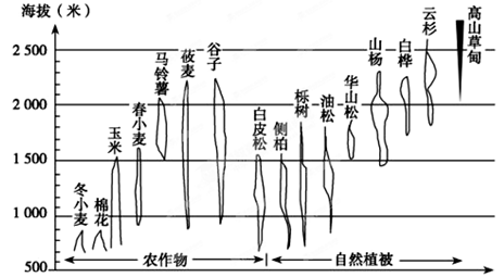 材料二:根据高分辨率遥感影像绘制的“山西省太原以南地区植被的垂直分布”图。