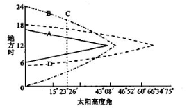 小题2:当地球运行到C位置时,太阳直射点的纬度是?。此时,正午太阳高度角达到一年中最大值得范围是?。