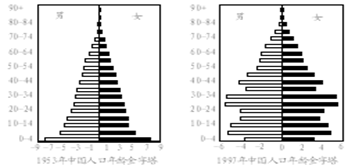 A.实行计划生育 B.海外移民 C.提高人口素质 D.改善医疗卫生条件 参考答案: 本题解析:考查人口金字塔图的判断。 本题难度:简单 2、单选题 读图,下面分析不正确的是 参考答案:A 本题解析:1953年,0-14岁人口比重大,说明新增人口多,不能说明劳动力充足。 本题难度:简单 3、单选题 2013年11月12日,第十八届三中全会《决定》提出:坚持计划生育的基本国策,启动实施一方是独生子女的夫妇可生育两个孩子的政策。下图是我国某省从建国初期至今后的人口自然增长轨迹示意图,其中Ⅲ阶段为预测段。完成小题。 |