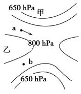 A.高空:甲处气压高于乙处 B.高空:乙处气温高于甲处 C.地面:甲处多阴雨天气 D.地面:乙处气温日较差小 2、单选题 图中a为等温线,b为锋线且向偏北方向移动,虚线范围内为雨区。读图回答下列小题。 |
