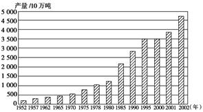 本题解析: 小题1:从图中不难看出从1952年到2002年,山西省的原煤生产量基本都是呈上升趋势。它也就反映了我国在能源基地建设方面采取的主要措施是单一的扩大煤炭开采量。 小题2:山西的原煤开采量逐年增加,势必加重其煤炭运输压力,为缓解晋煤外运的交通压力,我国采取主要措施修建煤炭运输专用通道(铁路),建坑品电站并辅以公路建设等,故选C 点评:本题要求考生明白:山西是我国最大煤炭能源生产基地,我国为缓解晋煤外运的交通压力而采取主要措施,试题难度不大。属于一般性的、常规题型。