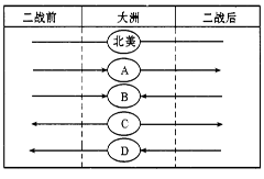 3、综合题 该图是“二战”前后人口迁移模式图(注:图中箭头表示人口迁入或迁出的方向),读图完成下列要求(7分)