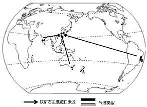 材料一:我国铁矿石主要进口来源示意图