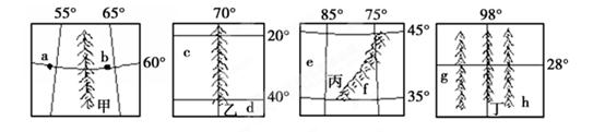 3、单选题 图中甲、乙、丙、丁表示四条著名山脉。读图,完成问题。