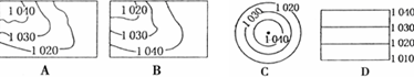 3、单选题 下图是某地区一月气压(单位:百帕)分布图,读图回答下列小题。