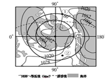 A.①地较②地晚进入新的一天 B.②地气温年较差比①地大 C.此时①地的昼长比②地更短 D.此时③海峡不能通航 |