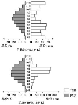 (4)假若图示区域位于北半球,则甲、乙之间的风向为 ;