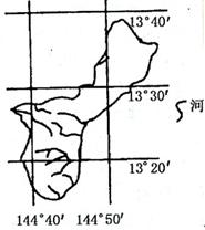 小题1:结合图示岛屿的经纬度分布判断,该岛屿位于东经144°,北纬13°附近,故判断该岛屿位于西北太平洋上,位于东半球。