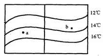 A.太阳辐射 B.洋流 C.陆地 D.大气 参考答案: 本题解析: 本题难度:一般 4、单选题 下图为《等高线分布示意图》,其中a>b>c,且800mm年等降水量线通过该地形区。读图回答1—2题。 参考答案: 本题解析:略 本题难度:简单 5、单选题 下图是中纬度某地区一月份等温线分布示意图,下列说法正确的是 参考答案:B 本题解析: 本题难度:简单 |