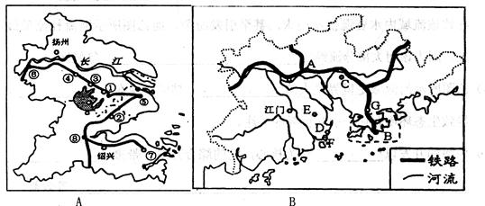 4、综合题 下图分别是我国长江三角洲和珠江三角洲经济区示意图,读后回答问题。(12分)