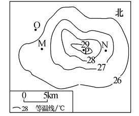 【小题3】图中等温线闭合,中心气温高,四周低,由于气温高的气压低,气温低的气压高,可判断P点气压低,其上空是高压,MN气压高,其上空是低压。选C正确。