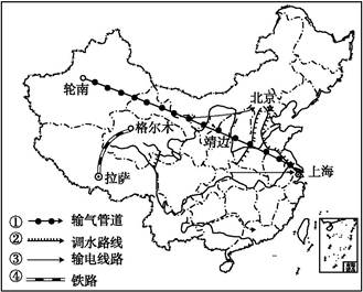 小题1:四大工程中沿线自然景观,呈现从沿海向内陆的地域分异规律的是①输气管道、③输电管道。