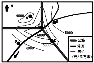 5、单选题 下图为我国华北某城市房价等值线图。回答下列各题。