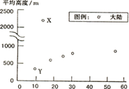 3、单选题 图是各大陆的面积与平均海拔高度关系示意图,据此回答4--5题。