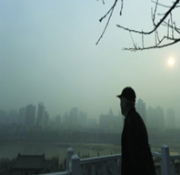 (3)气象要素主要包括风速、气温、降水等。风速的大小影响污染物的浓度。一般情况下,在低层大气中,通常气温是随高度的增加而降低的。这种现象使空气上下对流显著,有利于污染物的扩散。但有时在某些层次可能出现相反的情况,气温随高度的增加而升高,这种现象称为逆温。逆温的出现就不利于空气的上升运动,如果有污染物的话,污染物就会长期停留在原处而造成污染。降水使污染物随雨水降落在地上,将有效的减轻大气污染。PM2.5,又名细颗粒物(下图为兰州爆发PM2.5污染时的情景),泛指悬浮在气体当中的微细固体或液体。首先它的存在降低大气的透明度,从而导致到达地面的太阳辐射减少。其次,它能充当凝结核,形成雾、降水。